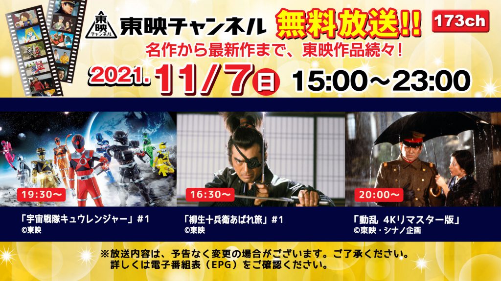 東映チャンネル」無料放送のお知らせ 古河ケーブルテレビ 2021