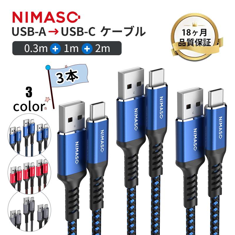 【3本セット】【 QC3.0 3A急速充電】Nimaso USB C/TYPE C ケーブル USB-A to USB-C ケーブル Macbook、iPad Pro(2018/2020)などtype c対応 データ転送 :yr-2020-atc-3:NimasoDirect - 通販 -