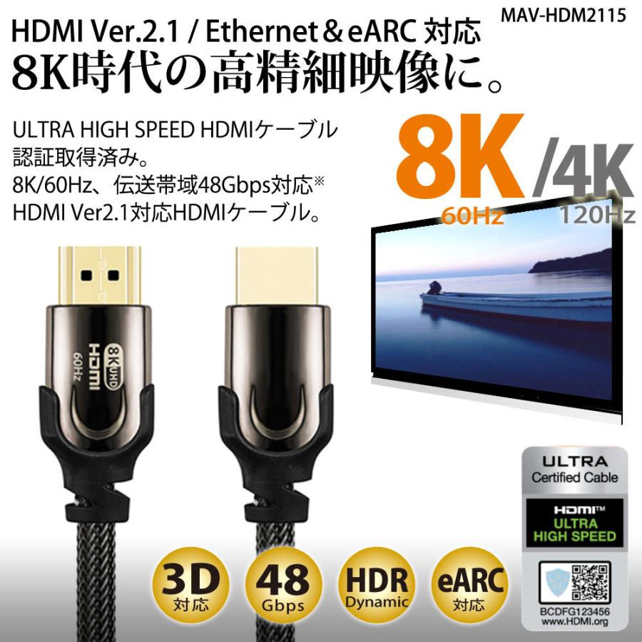 hdmi ケーブル ハイ スピード - HDMIケーブル ver2.1 ウルトラハイスピード 1.5m miwakura 美和蔵 48Gbps / 4K 120Hz / 8K 60Hz / HDR / eARC対応 強靭メ ッシュ仕様 ブラック MAV-HDM2115 ◆メ