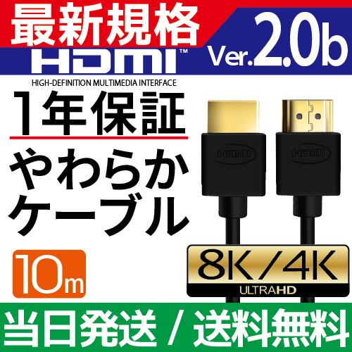 HDMIケーブル 10m Ver.2.0b フルハイビジョン HDMI ケーブル 4K 8K 3D 対応 10.0m 1000cm HDMI100 AV PC 細線 スリム ハイスピード 送料無料 ハンファ・ジャパン - 通販 - PayPayモール