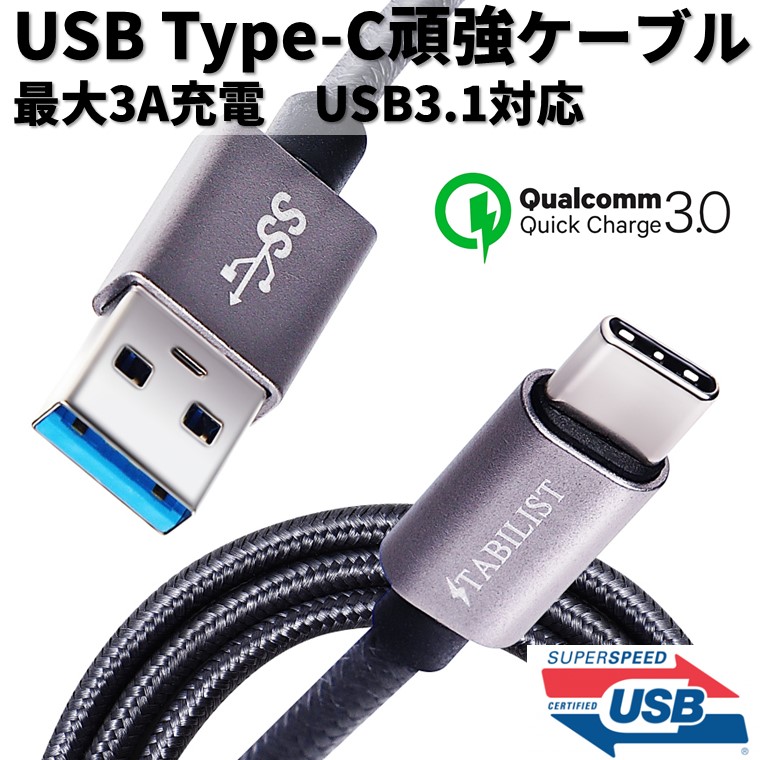 ipad pro ケーブル - USB-Type-C ケーブル 1m 3A 急速充電 USB3.0 変換 タイ プc typec USB-C